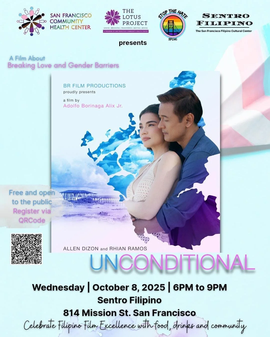 We are also pleased to present a special screening of Unconditional on Wednesday, October 8, 2025, at Sentro Filipino, 814 Mission Street, San Francisco. “Unconditional” is a powerful and unique love story that explores and uplifts the breaking of love and gender barriers.