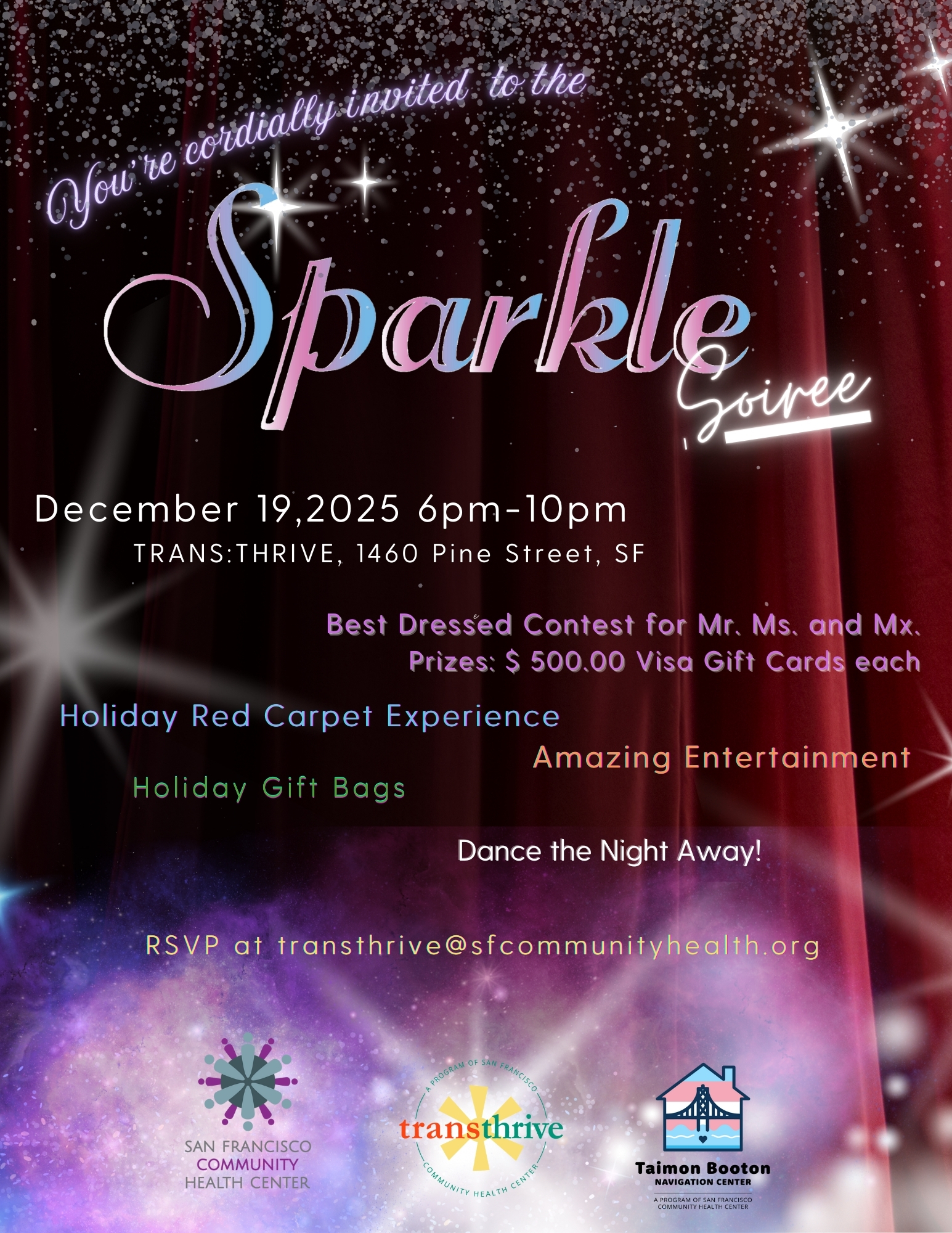 Get ready for one of the cutest, most magical nights of the year! Transthrive’s Sparkle Ball is back on Friday, December 19, and we’re rolling out an evening full of joy, glam, and community. Come dressed to shine. Enjoy music, dancing, treat, and friends and family.